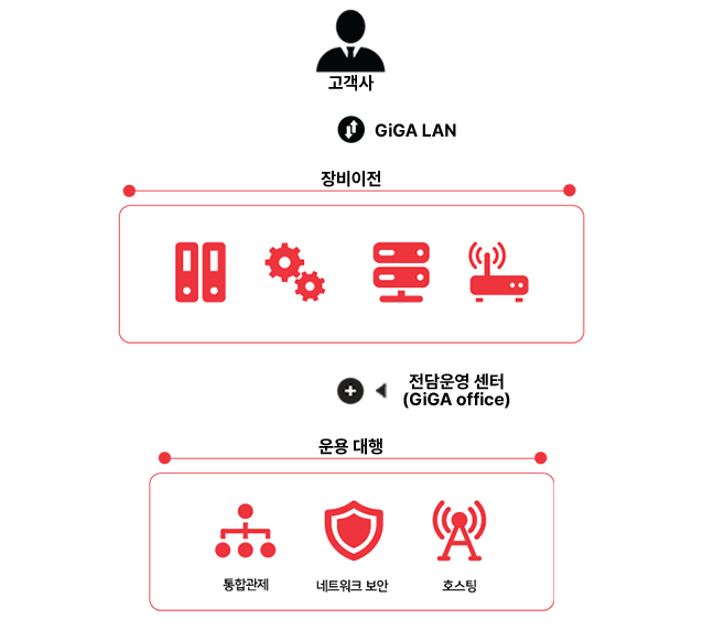 기업용 전용회선, 호스팅, 통합 관제 서비스를 모두 제공하는